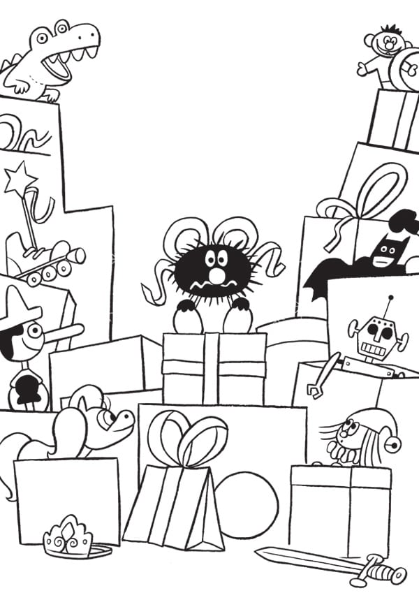 Catastrophe, la cigogne ouvre grand son bec, Petit poilu dégringole dans une cheminée et atterrit chez des inconnus au pied du sapin, comme un cadeau tombé du ciel. La petite fille de la maison s'entiche bien vite de ce joujou poilu...